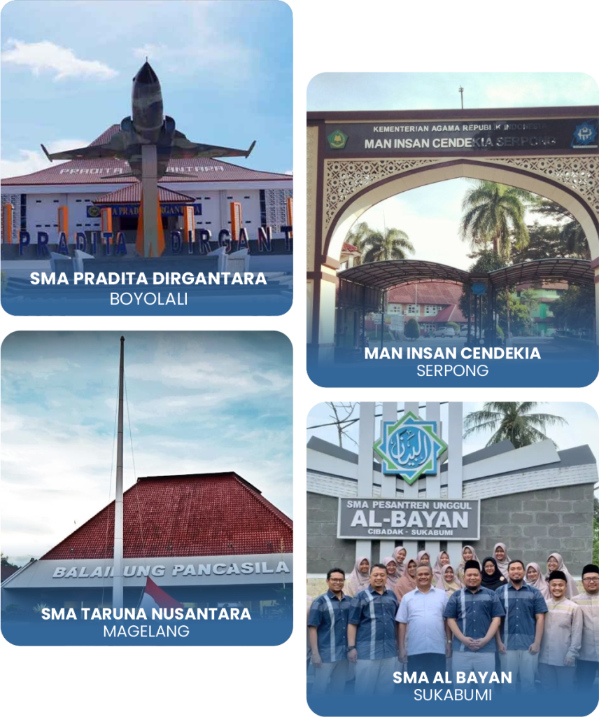 Bimbingan Belajar Khusus untuk Lolos Sekolah Favorit: SMA AL BAYAN (Sukabumi), MAN INSAN CENDEKIA (Serpong), SMA TARUNA NUSANTARA (Magelang), SMA PRADITA DIRGANTARA (Boyolali)